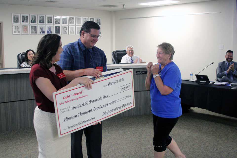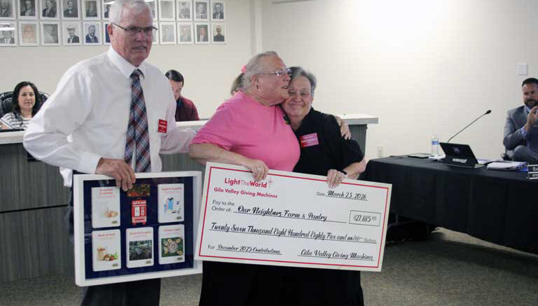 Our Neighbor’s Farm and Pantry received $27,885 through donations in the Giving Machines last December, while St. Vincent DePaul Society received $19,020 and Southeastern Arizona Community Unique Services (SEACUS) received $17,005.