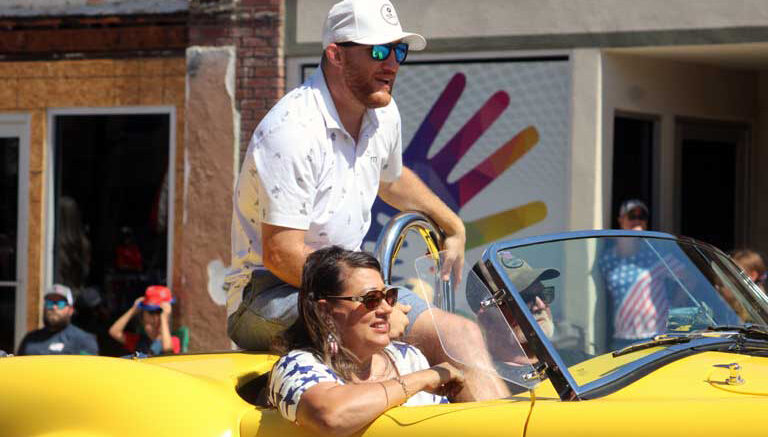Carolina Gaethje rides in the 2024 Safford Fourth of July Parade with the parade's grand marshal, her son, Justin. On Monday, Aug. 22, 2025, Carolina was appointed to the Thatcher Town Council, to serve until 2028. - David Bell Photo/Gila Valley Central
