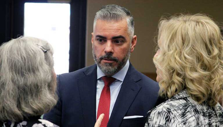 U.S. Rep. Juan Ciscomani, R-Ariz., speaks with a pair of constituents during the Graham County Republican Committee's Lincoln Day Luncheon on Feb. 16, 2026. - David Bell Photo/Gila Valley Central
