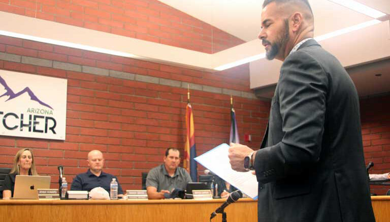 During the most recent Thatcher Town Council meeting, Monday, Dec. 15, Safford Interim City Manager Eric Bejarano introduced himself to the council and Thatcher town staff.
