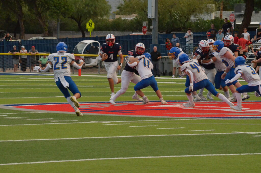 Corona (22) eyes Scottsdale Christian QB Sean Hegelson in week 1.