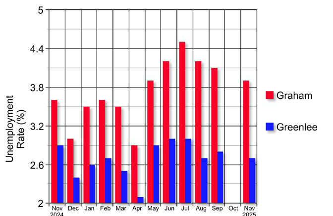 The jobless rate in Graham County fell by two-tenths of a point in November, to 3.9 percent. That’s good for third lowest in the state behind Greenlee and Maricopa County at 3.7 percent.