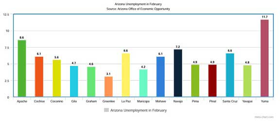 Arizona’s seasonally-adjusted unemployment rate increased one-tenth of a point in February, to 4.6 percent, while the national unemployment rate climbed one-tenth of a point to 4.4 percent.