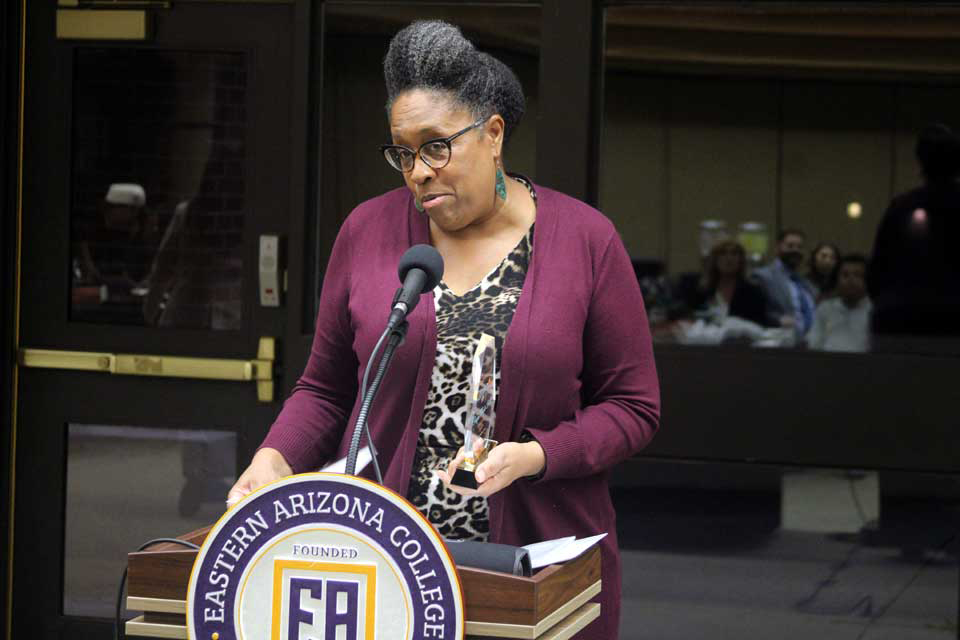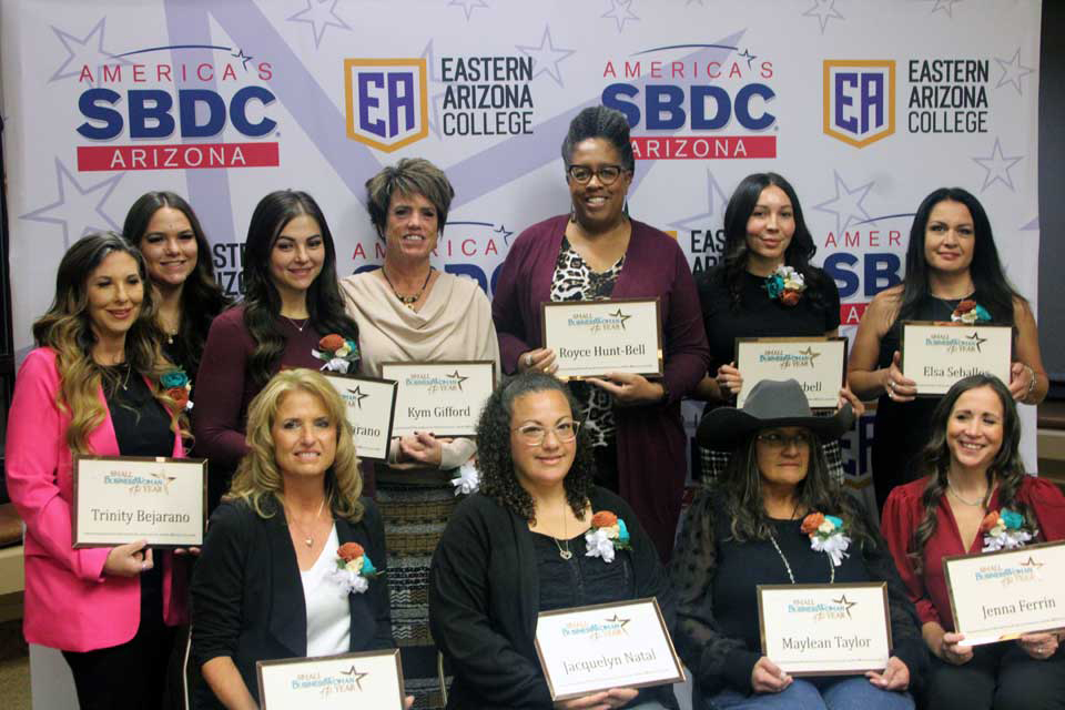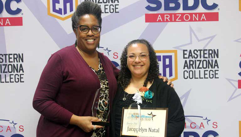 Jacquelyn Natal, owner of Delicious Desserts, received the award for Greenlee County; and Royce Hunt-Bell, owner of Roycycled Treasures and Roycycled Academy, the Graham County winner. Both are graduates of the Dreambuilder women’s business development program taught by the SBDC.