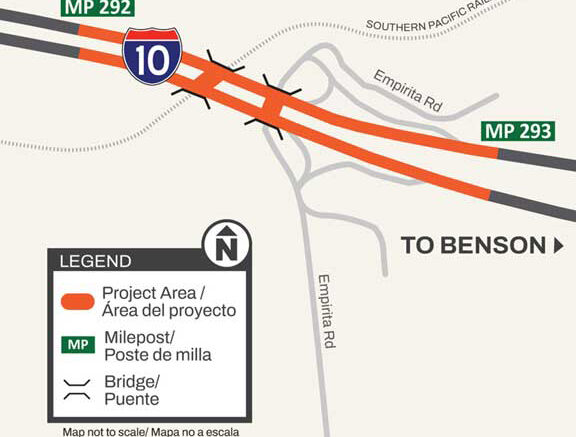 Arizona Department of Transportation announced that the speed limit on Interstate 10, from mileposts 292-293, near Empirita Road, will be reduced 25 miles an hour in both directions, from 10 p.m. Friday, March 20, to 6 a.m. Saturday, March 21.