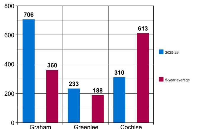 In Greenlee County, there have been 233 cases of flu so far this flu season, up 24 percent from the five-year average of 188 cases.