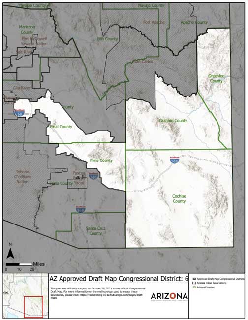 The new district would include all of Greenlee and Cochise counties, most of Graham County excluding the San Carlos Apache Reservation, a portion of Tucson in Pima County, and extend into Pinal County to include Coolidge.