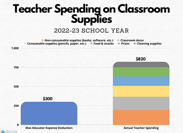 And despite recent increases, the educator expense deduction still isn’t nearly enough to cover how much teachers have to spend, only allowing teachers to deduct up to $300 of out-of-pocket classroom expenses when filing their federal tax returns.