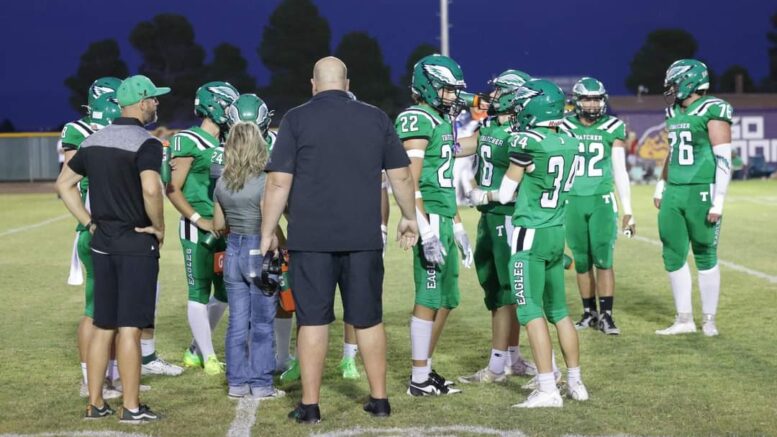 Thatcher quarterback Chad Johnson completed 8 of 11 passes for 110 yards and a touchdown, while adding a rushing touchdown. Running back Kody Bingham carried the ball 18 times for 159 yards and a score as the Eagles (3-0) controlled the pace of the game with 197 rushing yards.